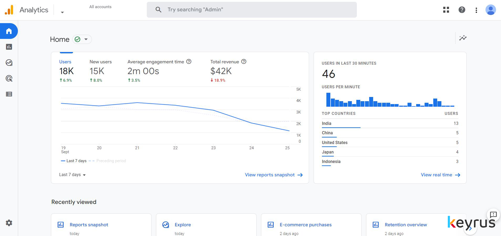 GA’s reports snapshot and reports menu