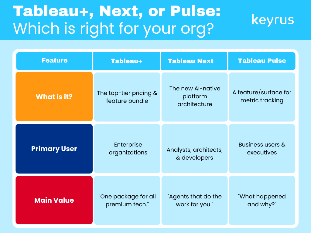 Which is best for my organization: Tableau+, Tableau Next, or Tableau Pulse?