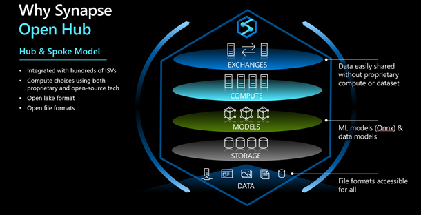 La plateforme Azure Synapse est différente et devient accessible au plus grand nombre. La complexité d’architecture liée aux différentes charges d’analyse est prise en charge par la plateforme en format managé, les collaborateurs et analystes sont alors libres de se concentrer sur la véritable valeur de leur travail, l’analyse des données. Vous n'avez plus à intégrer l’ensemble des composants architecturaux pour répondre à un objectif préétabli, en espérant obtenir à la fois flexibilité et économie. Au contraire, ces besoins sont satisfaits dès le départ et il en résulte un continuum de capacités analytiques. Les performances et la mise à l'échelle de toutes les capacités analytiques sont gérées en central par la plateforme. La continuité d'analyse brise le flux unidirectionnel traditionnel des données et crée une boucle vertueuse entre les applications, les systèmes et les personnes qui manipulent les données à disposition ou dans la plateforme ou dans les systèmes liés. Pour permettre le mouvement constant des données entre les couches d'application et d'analyse, la plateforme Azure Synapse prend en charge l'intégration des données par lots et en temps réel à partir de plus de 100 sources de données.