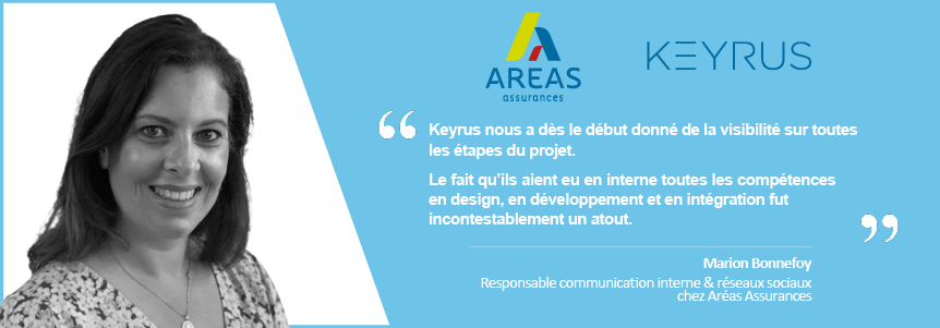 « Le défi d’un projet comme celui-ci est d’embarquer tous les utilisateurs. Aréas Assurances l’a parfaitement compris et s’en est vraiment donné les moyens de réussir. Grâce à notre "Jalios Factory" nous avons pu mobiliser toutes les compétences nécessaires en création, développement, intégration et gestion de projet pour que le résultat soit à la hauteur des attentes, tout en respectant les délais et le budget prévus », conclut Thomas Incorvaia, Directeur de projet chez Keyrus.