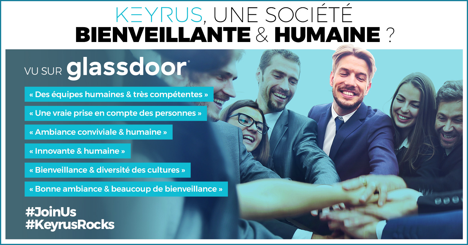 Keyrus, une société bienveillante & humaine ? « Des équipes humaines & très compétentes » « Une vraie prise en compte des personnes » « Ambiance conviviale & humaine » « Innovante & humaine » « Bienveillance & diversité des cultures » « Bonne ambiance & beaucoup de bienveillance »