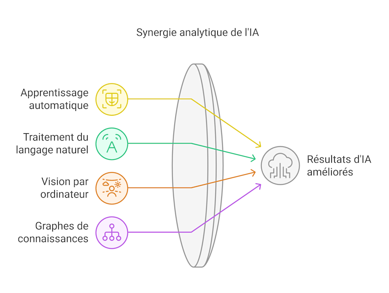 Face à ces défis, l’IA composite s’impose comme une solution innovante et résiliente. En combinant plusieurs techniques analytiques – machine learning, traitement du langage naturel (NLP), vision par ordinateur et graphes de connaissances – elle permet de :