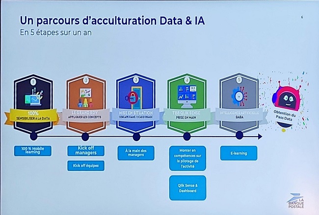 Gaëlle Bonnefoux nous présente le retour d’expérience de la mise en place d’un parcours d'acculturation data & IA au sein de la Banque Postale. Objectif : accompagner l'ensemble des collaborateurs du marketing dans la connaissance data et IA pour que leur comportement face à la data évolue. Ce parcours est décomposé en 5 badges :