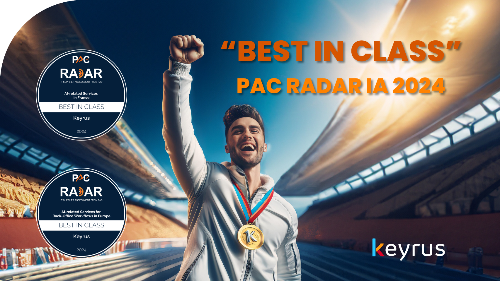 A l’occasion de la sortie le 18/09/24 du nouveau rapport de Pierre Audoin Consultants (PAC), Keyrus - acteur international dans les domaines de la Data, du Digital ainsi que du Conseil en Management et Transformation des entreprises - est reconnu comme "Best in class" dans les catégories "Leaders in AI-related Services in France" et "AI-related Services for Back-Office Workflows in Europe" en 2024. Cette double distinction, la plus haute du classement, positionne Keyrus parmi les leaders de l’industrie IA auprès des géants du secteur.