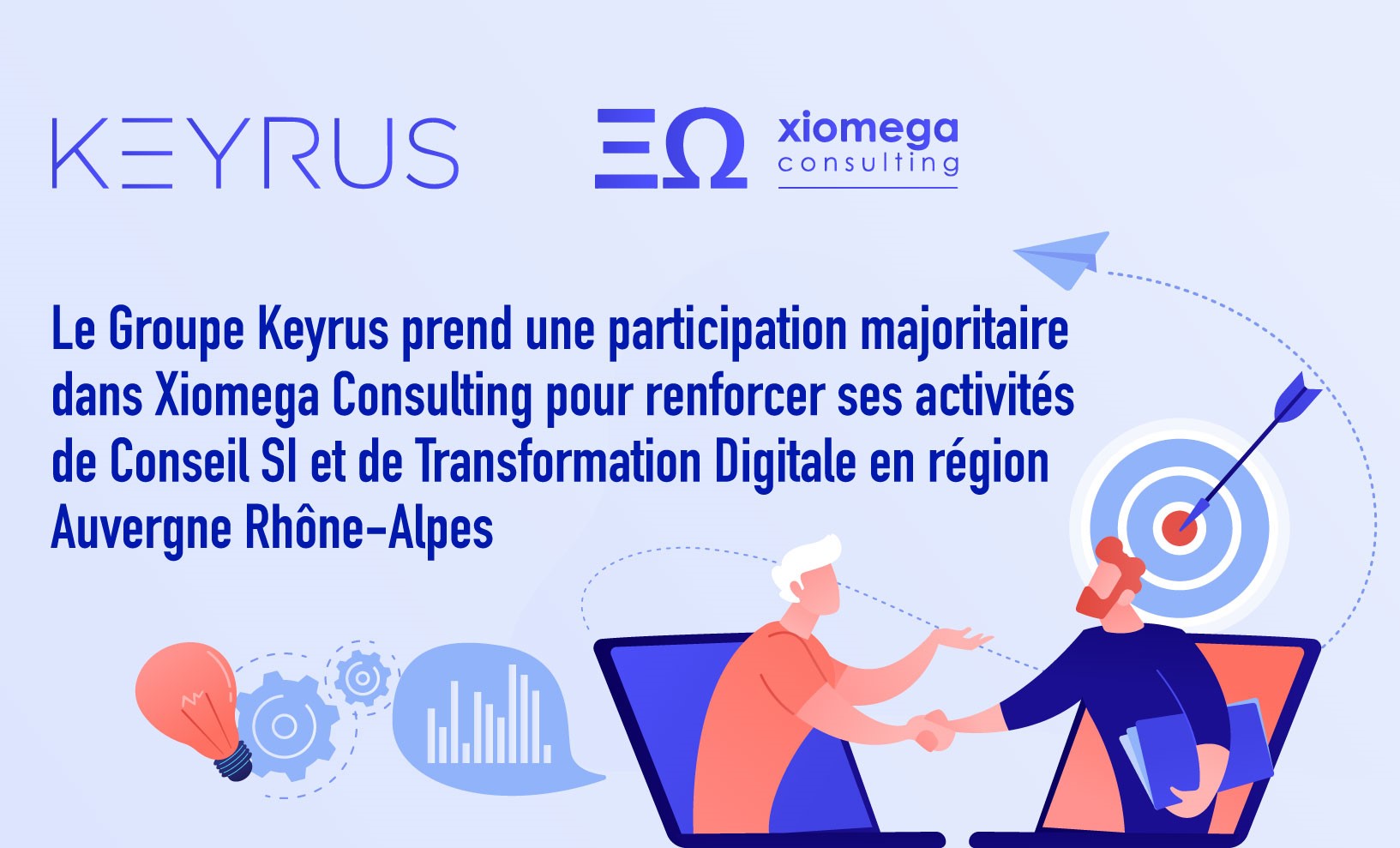 Levallois-Perret, le 12 novembre 2020, Keyrus, acteur international dans les domaines de la Data Intelligence, du Digital ainsi que du Conseil en Management et Transformation des entreprises, annonce une prise de participation majoritaire au sein du cabinet Xiomega Consulting afin d’enrichir ses compétences en Conseil SI et Transformation Digitale.