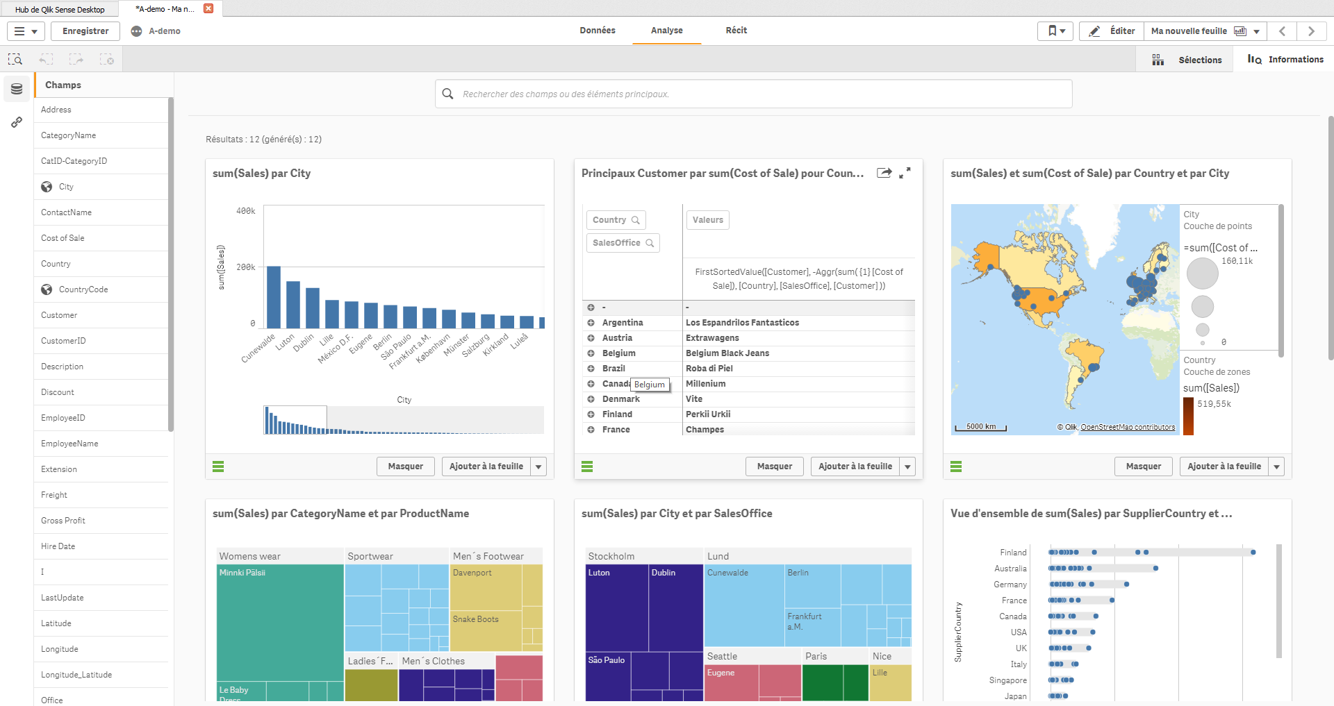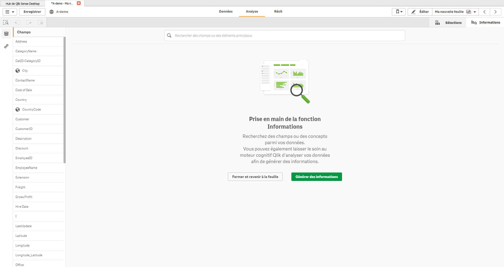 Toute la puissance du moteur réside dans cette question. Dans un premier temps, Qlik Sense va analyser les données, l’ensemble des champs et les métadonnées. Ainsi, il va fournir une liste complète de l’ensemble des champs avec leurs types.