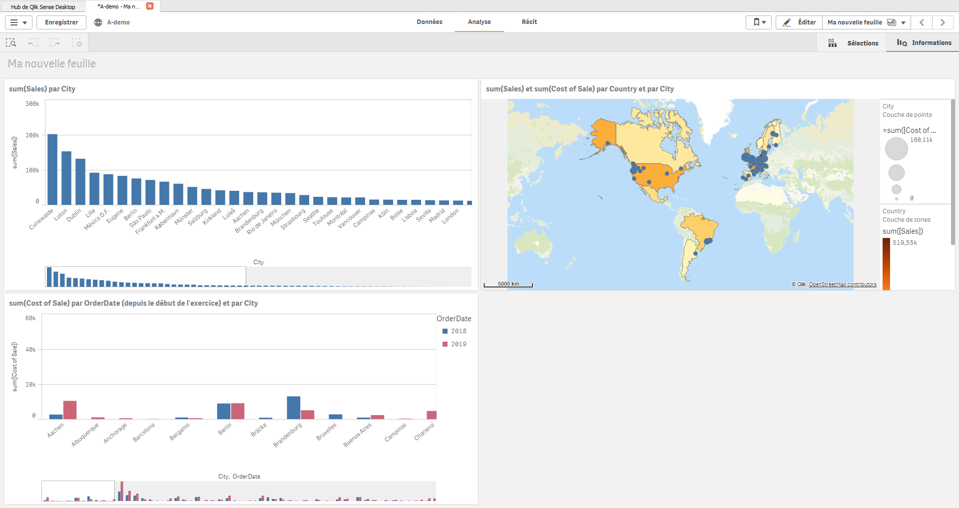 L’éditeur Qlik a bien compris cette problématique et a créé il y a 4 ans Qlik Sense, un outil de visualisation web 2.0 afin de permettre aux utilisateurs de disposer des données, d’importer celles provenant de diverses sources, de créer des restitutions sans connaître les fondamentaux de la Business Intelligence ou de l’informatique.