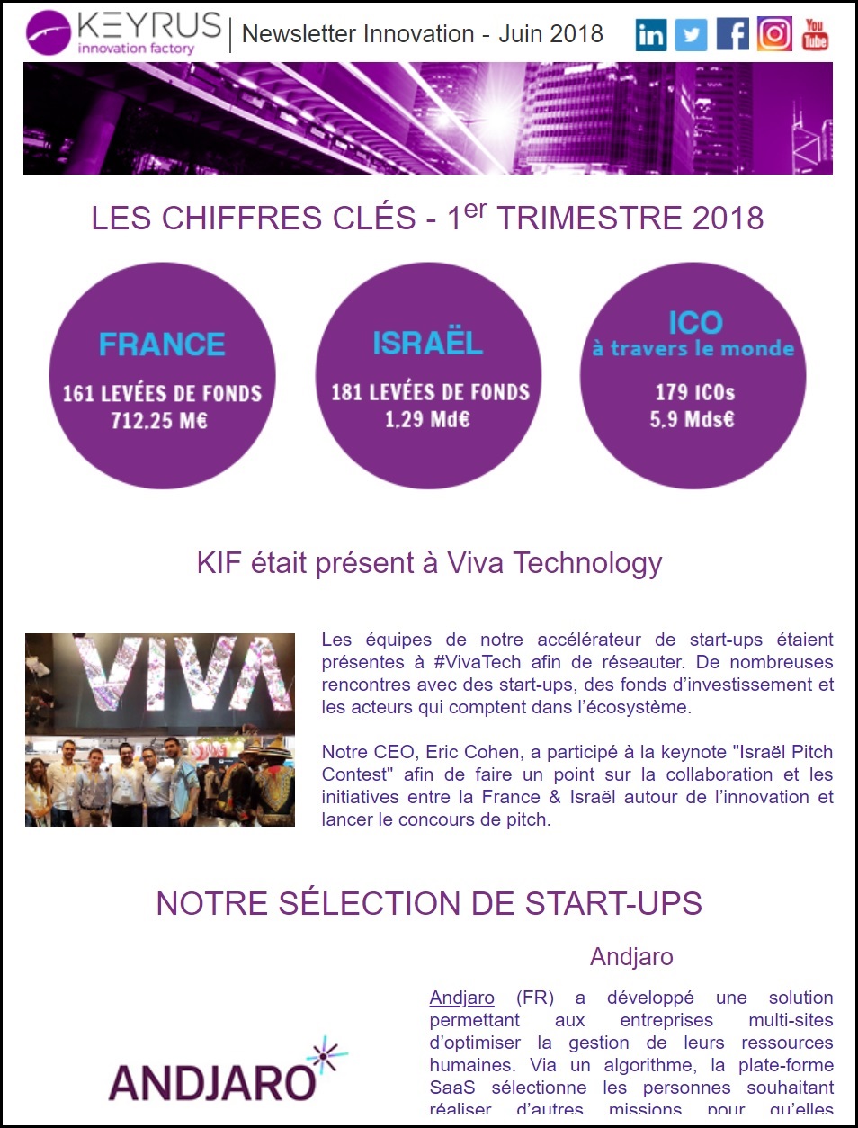 Pour découvrir la Newsletter Innovation de Juin 2018 de KIF, l’accélérateur de start-ups du Groupe Keyrus, allez sur ce lien.