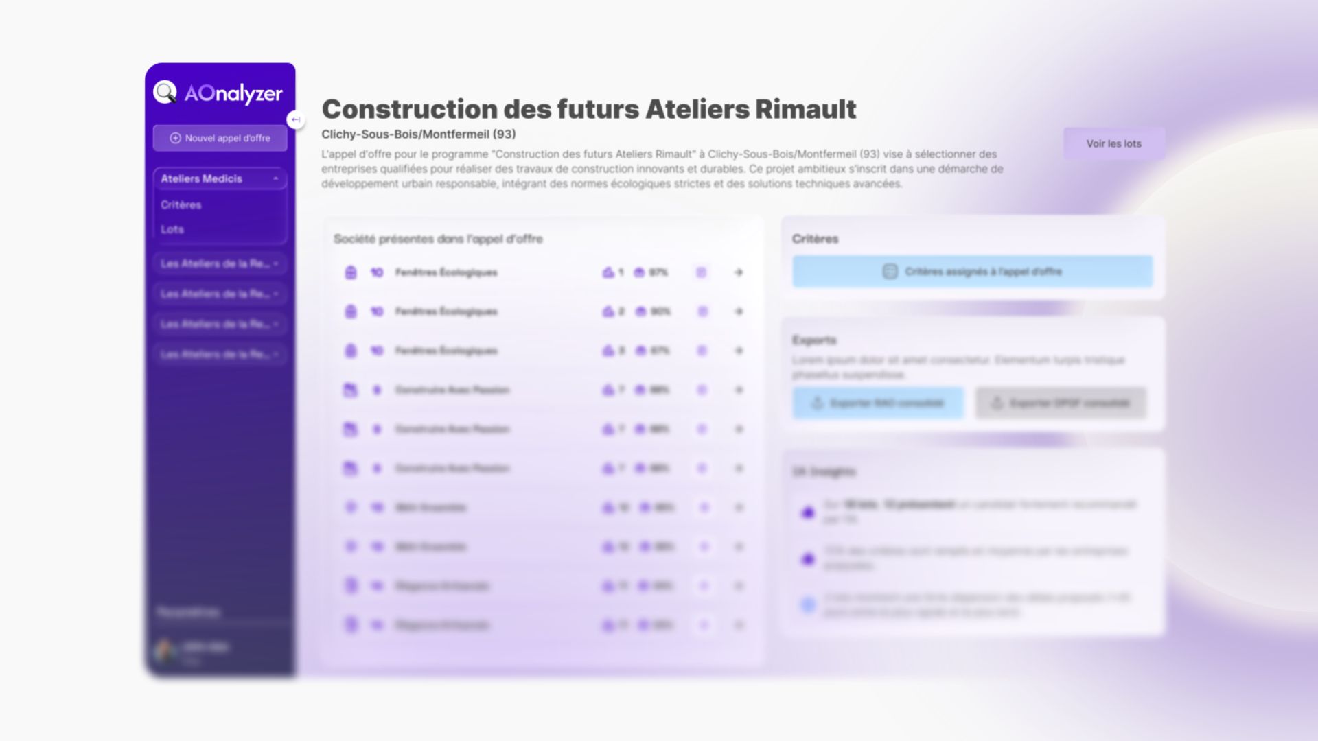 Développé par Younicorns sous la direction de Jonathan Horyn, Offer Insight AI est une solution d’analyse d’appels d’offres alimentée par l’intelligence artificielle. Elle permet notamment de : • Lire et extraire les informations clés de tous types de documents fournisseurs (PDF, Word, Excel…) • Évaluer et noter automatiquement les propositions selon vos critères • Générer des contenus de réponse adaptés à chaque consultation • Travailler en temps réel avec l’ensemble des parties prenantes