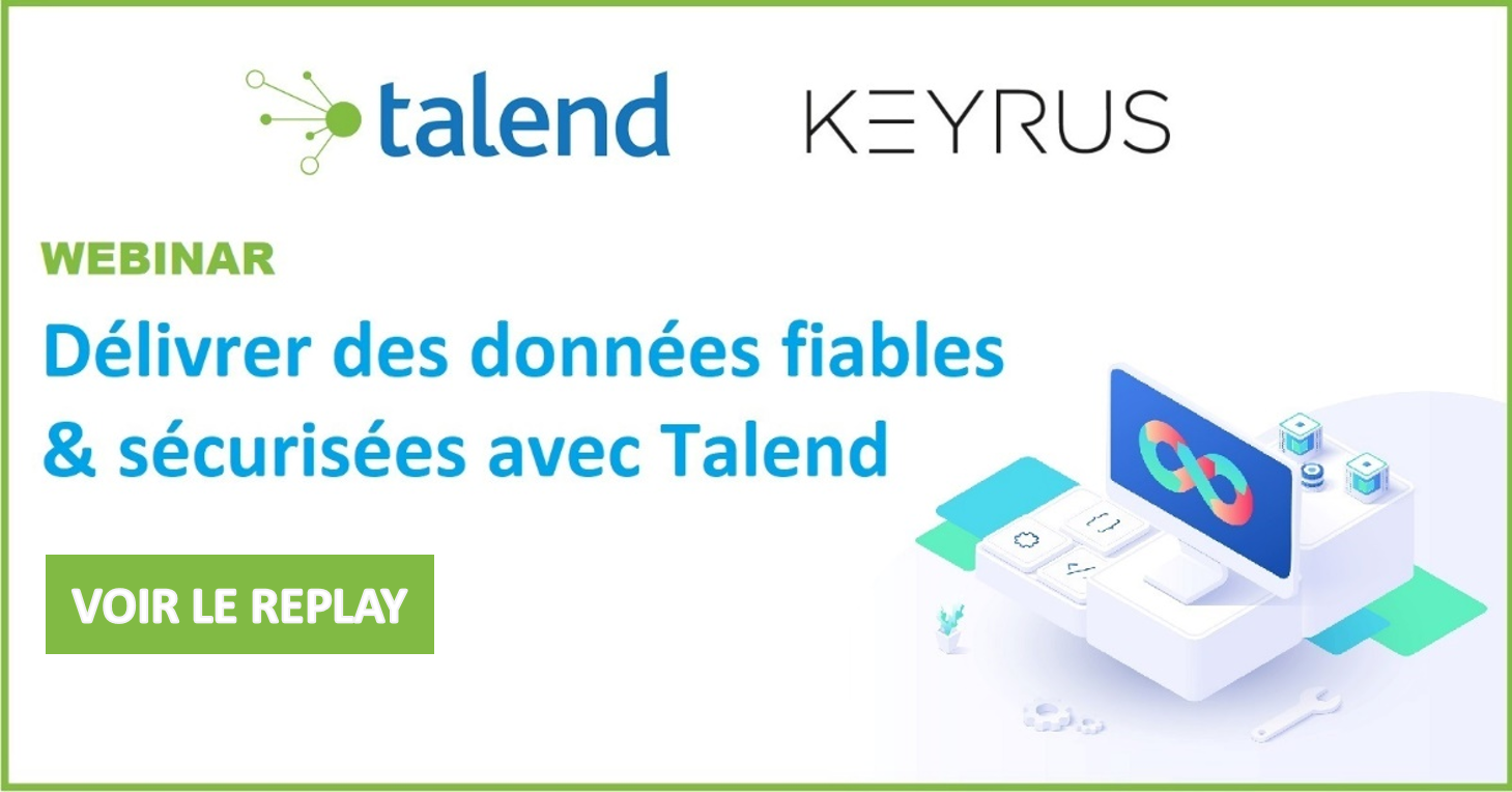 Comment faciliter l’accès à des données de qualité à vos directions métiers ? Quels leviers pour accélérer le traitement de vos données ? . Les nouveautés d’intégration : Stitch Data Loader, Pipeline Designer, Data Inventory et Data Integration . Sécurisez et gouvernez vos données : Data Catalog, Data Quality, Data Preparation et Data Stewardship . Facilitez la publication de vos données : Api Designer et Api Tester 45 minutes, animé par : . Jean-Michel Franco, Senior Director Product Marketing chez Talend . Simon Leroy, Lead Tech Talend chez Keyrus