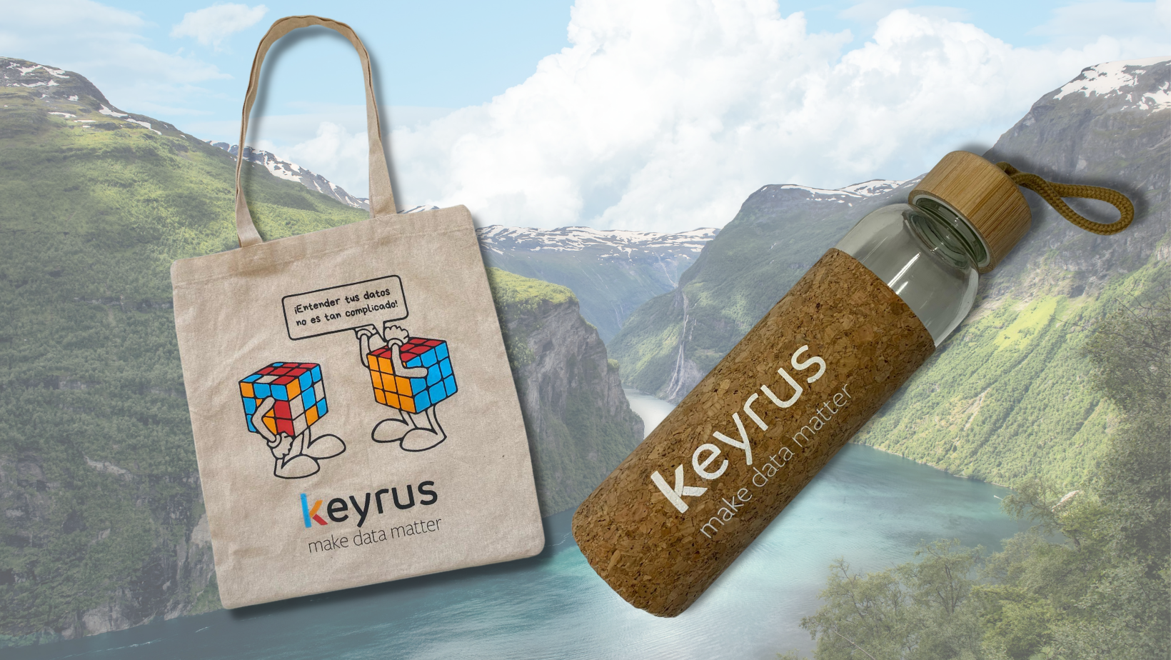 Desde Keyrus, nos preguntamos ¿Cómo podemos sumarnos a la causa aportando nuestro granito de arena? Surgieron muchas ideas, algunas aun cogiendo forma y otras que veréis muy pronto en nuestras redes sociales, pero sin duda alguna, la primera acción fue muy fácil de aterrizar: alinear las políticas de merchandising de Marketing, Comunicación y Recursos Humanos con la estrategia ESG global. Fruto de esta nueva política, nacen dos de los artículos de merchandising que están revolucionando nuestros eventos, nuestra comunicación y sobre todo, la relación con nuestros empleados: la botella de vidrio con envoltura de corcho junto con la bolsa de tela que levanta envidias entre las influencers más top del momento (aunque ellas no quieran reconocerlo de manera gratuita).