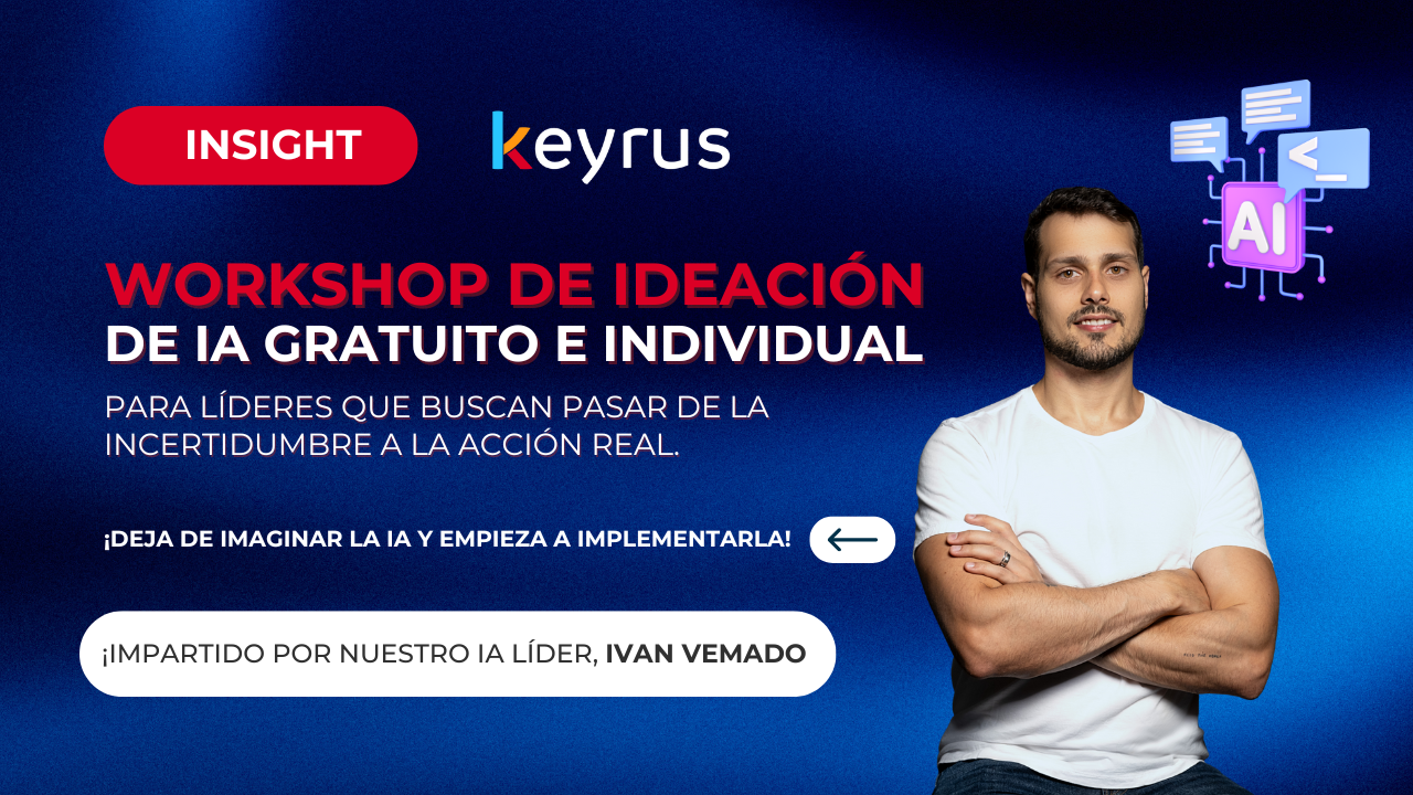 Muchos líderes se encuentran atrapados en una fase de "pilotos infinitos" o herramientas aisladas que no logran escalar. Para cerrar esta brecha, Keyrus presenta su nuevo taller práctico de Ideación de IA, diseñado exclusivamente para líderes que buscan transformar la curiosidad tecnológica en una ventaja competitiva real.