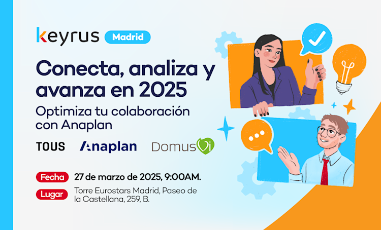 Organizado por Keyrus en colaboración con Anaplan, este evento ofrece a los responsables de finanzas una oportunidad única de conocer de primera mano cómo DomusVi y TOUS han utilizado Anaplan para optimizar su planificación financiera y mejorar la toma de decisiones.