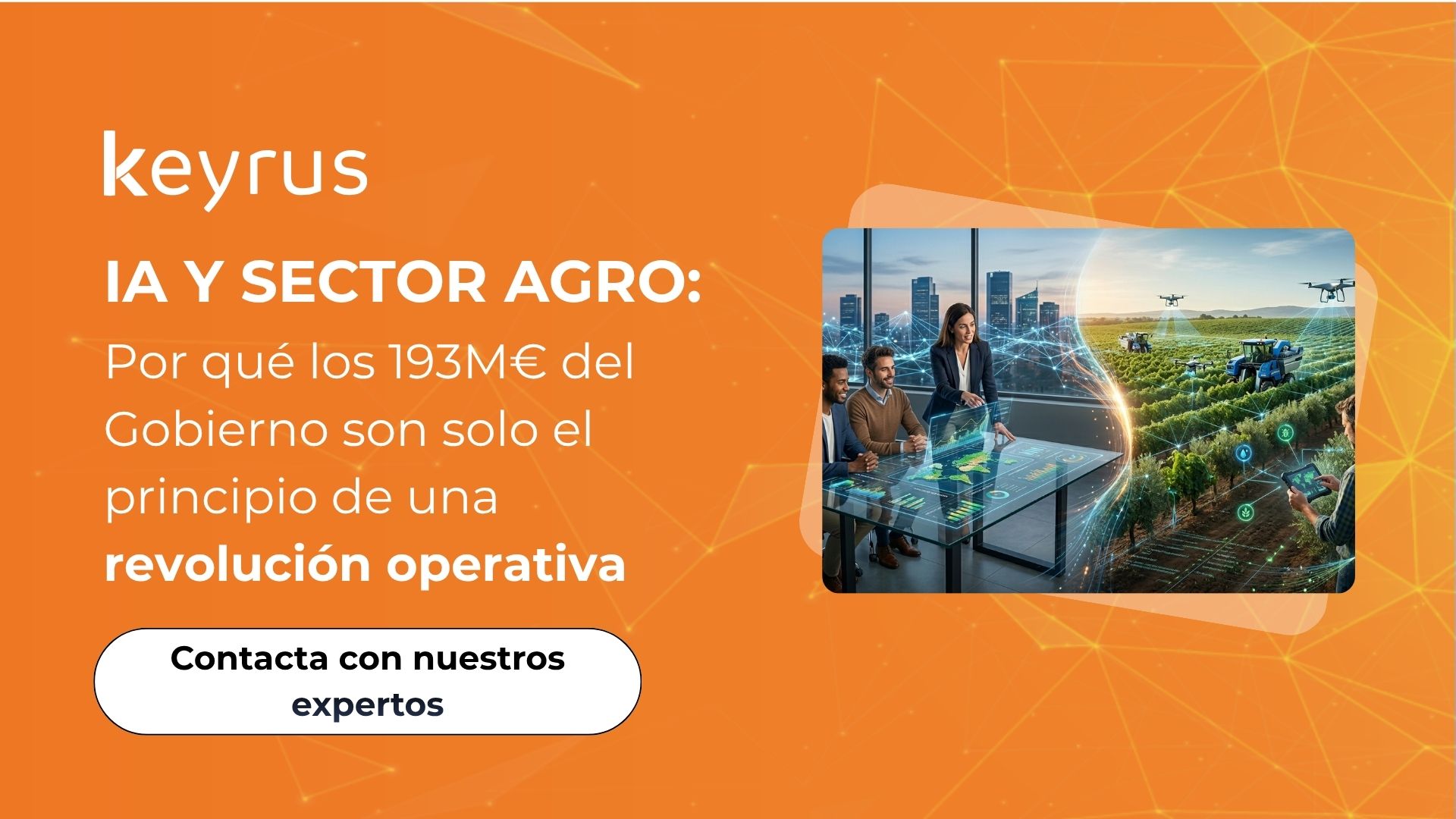 España ya es la cuarta potencia exportadora de la UE. Para mantener ese puesto en un mercado global cada vez más volátil y afectado por el cambio climático, la Inteligencia Artificial es el fertilizante más potente disponible. Los 193 millones de euros anunciados por el Gobierno son el catalizador. En Keyrus, ponemos la visión estratégica y la capacidad técnica para transformar esos fondos en una ventaja competitiva real y sostenible. Contacta con nuestros expertos si quieres definir tu hoja de ruta y generar impacto.
