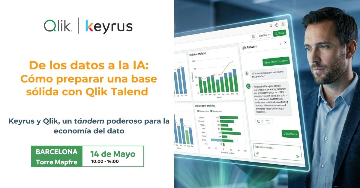 Para abordar este desafío, Keyrus organiza el evento exclusivo "De los datos a la IA: cómo preparar una base sólida con Qlik Talend", que tendrá lugar el próximo 14 de mayo en Barcelona.