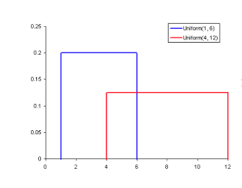 La imagen anterior ilustra la distribución de probabilidad más básica: una distribución uniforme. Nos muestra que todos los valores entre un rango determinado son igualmente probables, mientras que todos los demás nunca pueden ocurrir.