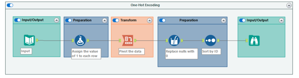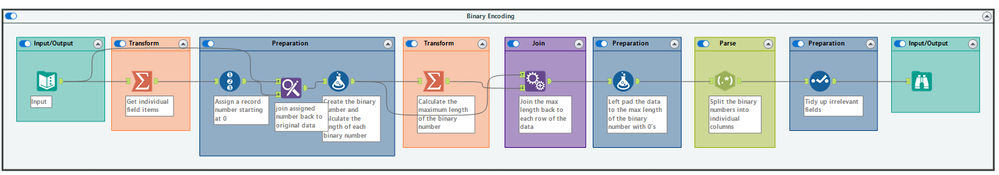 We’ll start with getting a single list of the unique items using the Summarize tool. Then, assign a number to each of the categories using the Record ID tool before using the Find Replace tool to join the Record ID (Number Assigned) back to the original data: