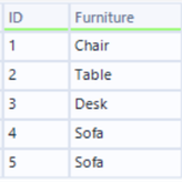 First, we create a new value column and assign the numeric value of 1 to each row. Then, we can use the Cross Tab tool to pivot the Furniture column using the following configuration: