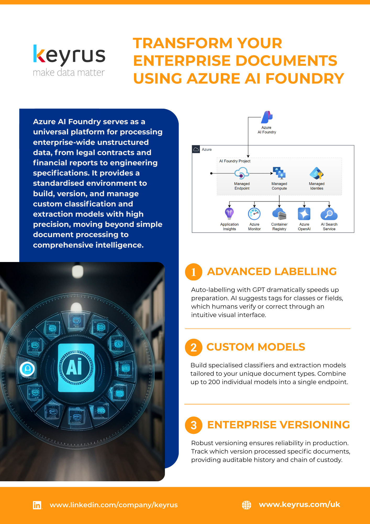 Contact Keyrus today to schedule an Azure AI Foundry strategy consultation. Let's build intelligent document processing that delivers business value while meeting the highest governance standards.