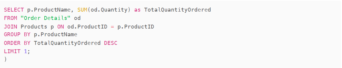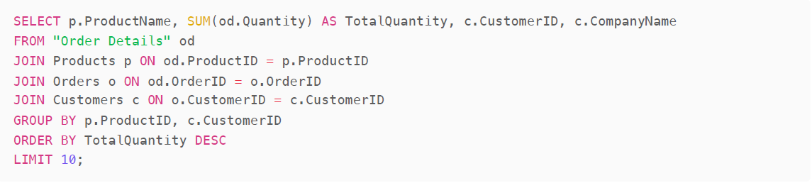 In contrast, the query generated by 4o is not what we're looking for. It returns the top Product and Customer combination, rather than the top Customer of the top Product overall. This answer is likely to be very dependent on the exact wording of the question.