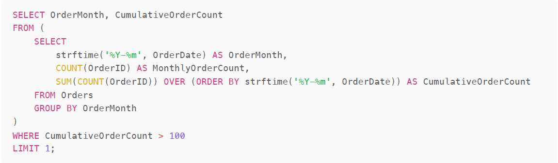 Q7. In which month did the cumulative order count surpass 100?