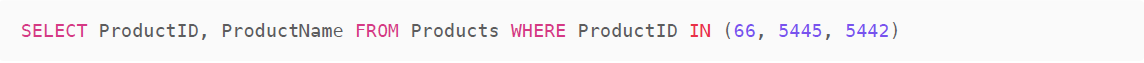 It seems that ProductIDs 5445 and 5442 do not exist in the Products table. Therefore, I can only provide the name for ProductID 66".