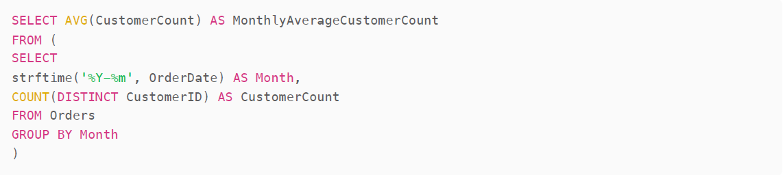 Agent Response: "The monthly average customer count across all months is approximately 67.04 customers."