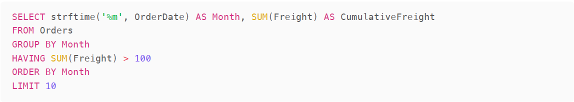 Already we see a big difference between the response given by GPT 3.5 Turbo and the newer GPT 4o. The former picks out the Freight cost column only and ignores UnitPrice, but does identify the Customers and Orders tables and formats a valid query complete with JOIN, GROUP BY and ORDER BY clauses.