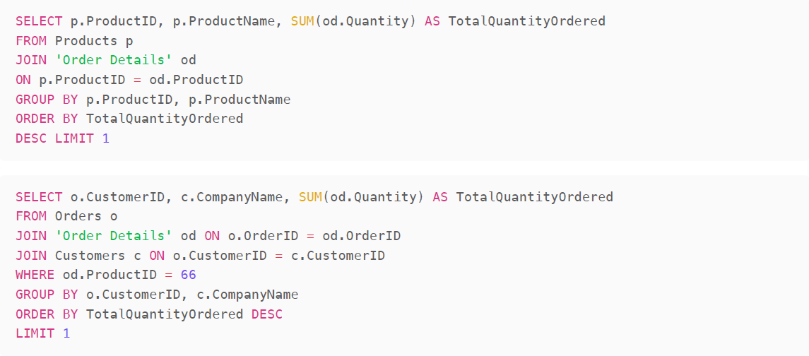 This question gets a little bit deeper and requires multiple joins of the same table, Order Details.