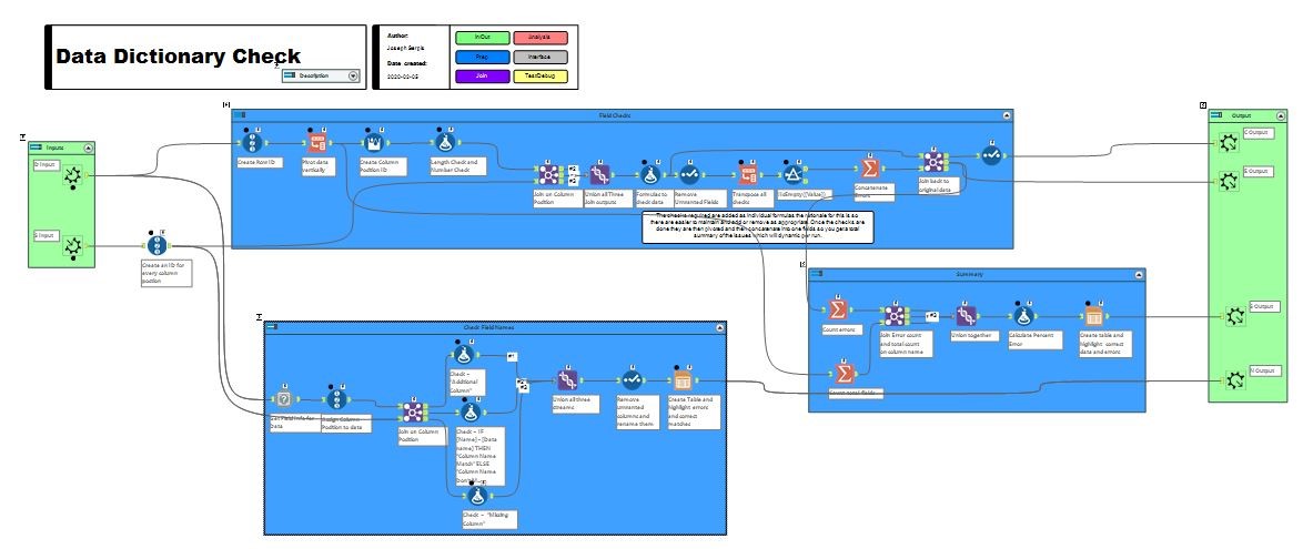 Using Alteryx to Perform Data Dictionary Checks By Joseph Serpis, Keyrus Senior Consultant & Alteryx ACE Alteryx can help in this scenario by making the checks easier and faster using the data dictionary, which the client typically provides or approves with the format of the data they expect to receive.