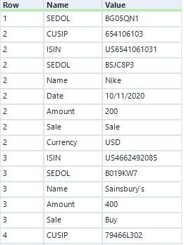 The Data Dictionary can be comprised of different fields to test the data. However in this scenario is comprised of 6 columns. What is particularly important is if the data needs to match a certain format to be valid, then Regex can greatly help. The Data format column has Regex to be used in the checking process (e.g. CUSIP where the nine characters must be either numeric or alphanumeric depending on the position). Using Regex in this way can enhance the data quality checking beyond checking the length of a field or the data type.