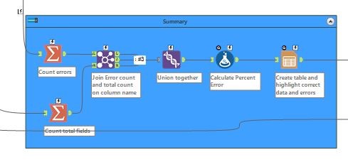 The Summary sections counts all the anomalies and totals all the fields in the data, in order to calculate the percentage of errors across all of the data.