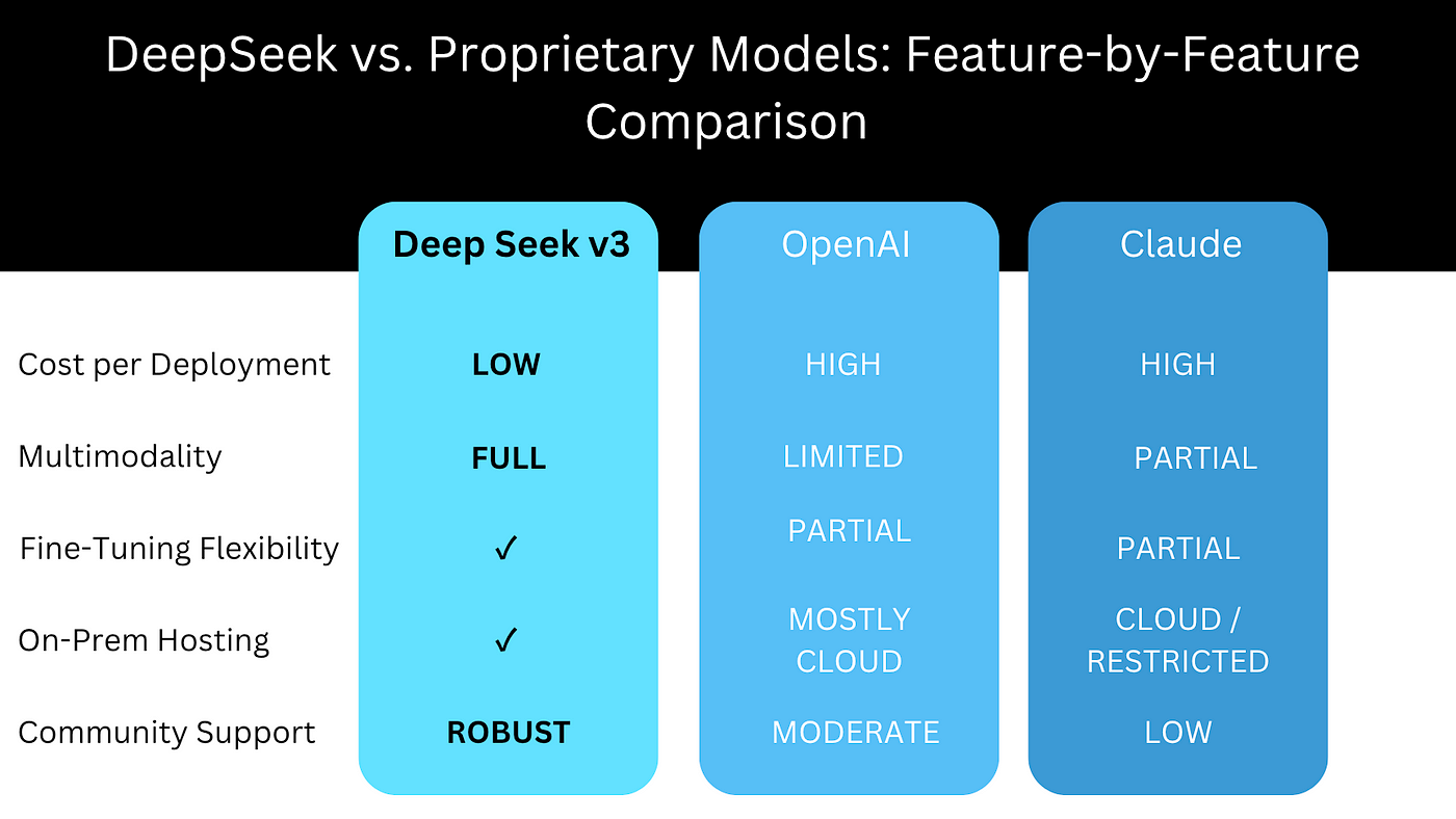 Impact on the Market | Causes shockwaves, drives AI innovation and accessibility | Maintains a strong presence, facing increased competition |