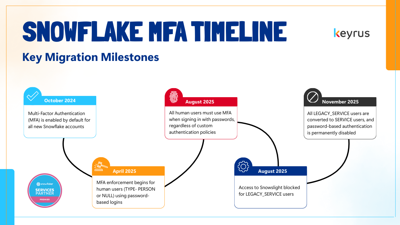 Snowflake’s new security policies are happening soon. If your organization still relies on password-based authentication, now is the time to prepare. Keyrus is ready to help you navigate these changes. Contact our Data and Snowflake teams today to discuss the best strategy for your organization.