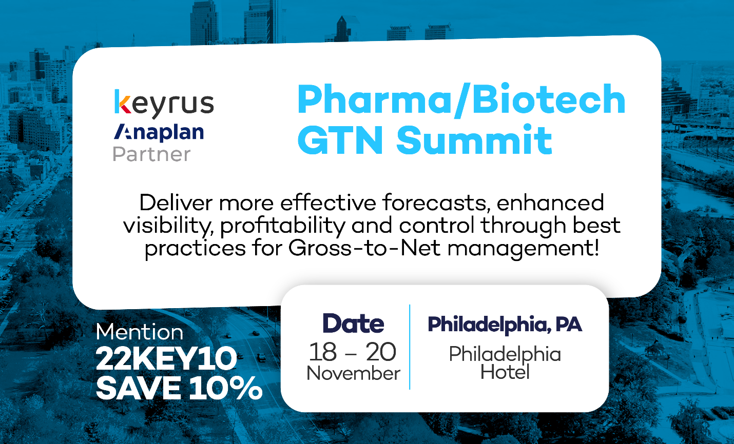 We are excited to announce that Keyrus and Anaplan are sponsoring the upcoming Bio/Pharma GTN Summit in Philadelphia, PA. This premier event brings together industry leaders, innovators, and professionals, and offers an incredible opportunity to explore model-sharing on strategic forecasting, estimates, analytics, and reporting for Pharma and Biotech Companies.
