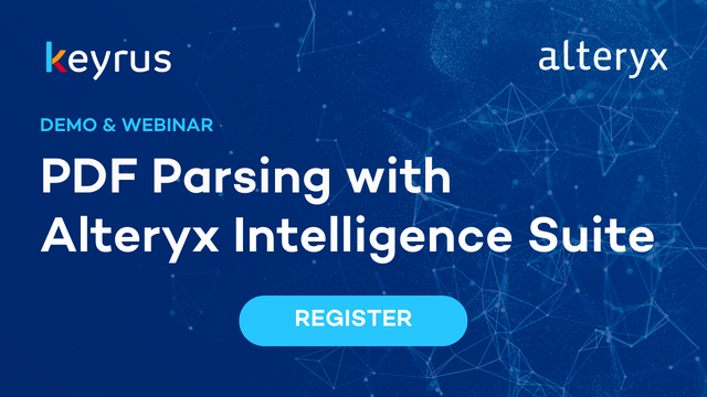 In 20 minutes, we’ll teach you how to use Alteryx Intelligence Suite to eliminate common problems and inefficiencies in accessing data from .pdf files. In the past, you’d need to run custom Python and complex parsing logic to get any usable data from a pdf. Now, you can parse PDFs with out-of-the-box features in Alteryx Intelligence Suite. In this webinar, the Keyrus team will cover: - A brief overview of Alteryx Intelligence Suite - Building a template to read in data from a .pdf - Reading data from multiple .pdfs of the same format - How to learn more about Intelligence Suite Keyrus is a global Premier Partner of Alteryx. Their team includes 3 Alteryx ACEs and over 100 certified consultants. Organizations utilize Keyrus to modernize their data platforms, move to the cloud, and develop advanced workflows for analytics automation.