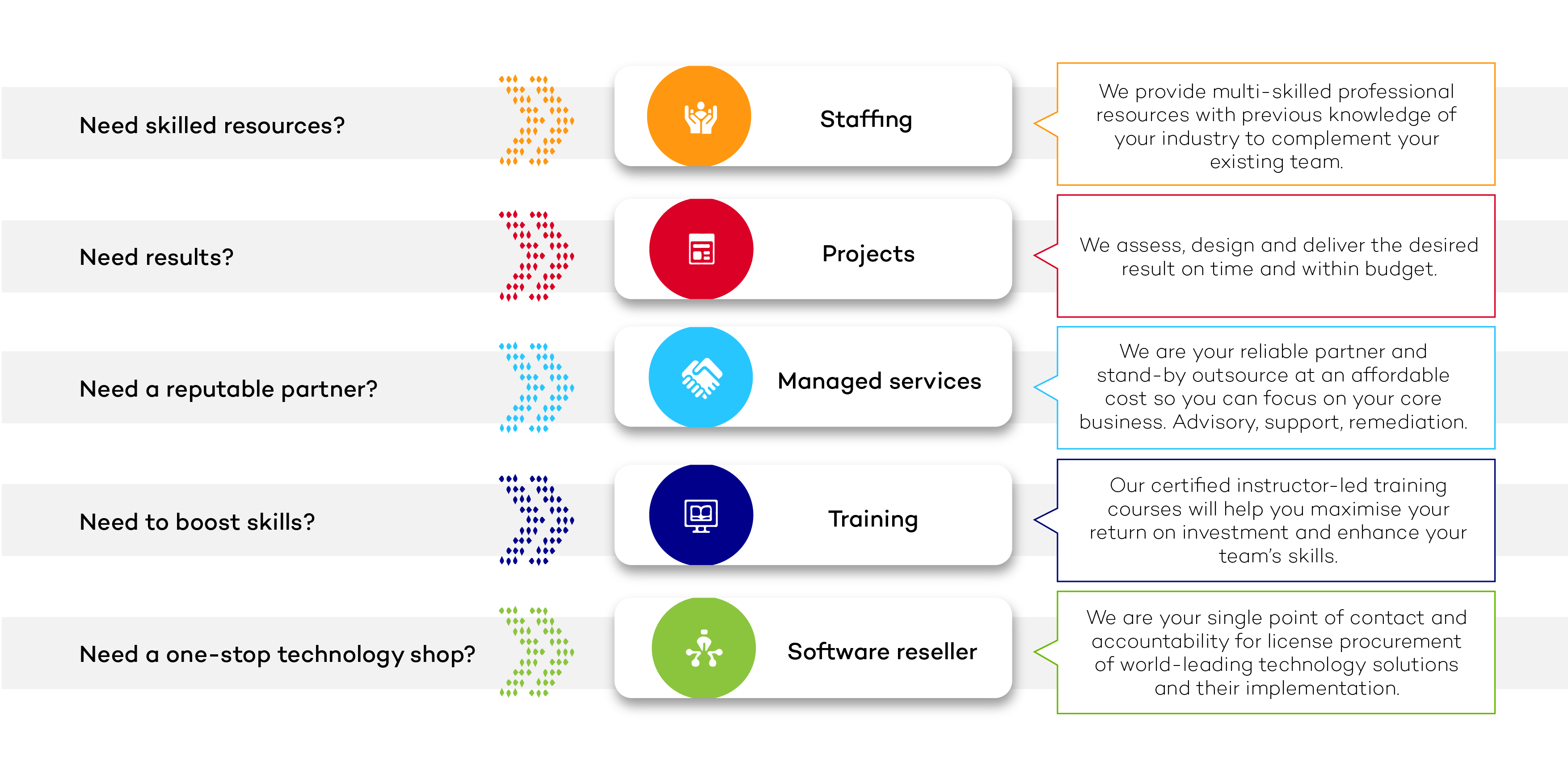 We deliver a wide range of services that are designed to meet your needs. Download the full offering here or contact us for more information at sales@keyrus.co.za