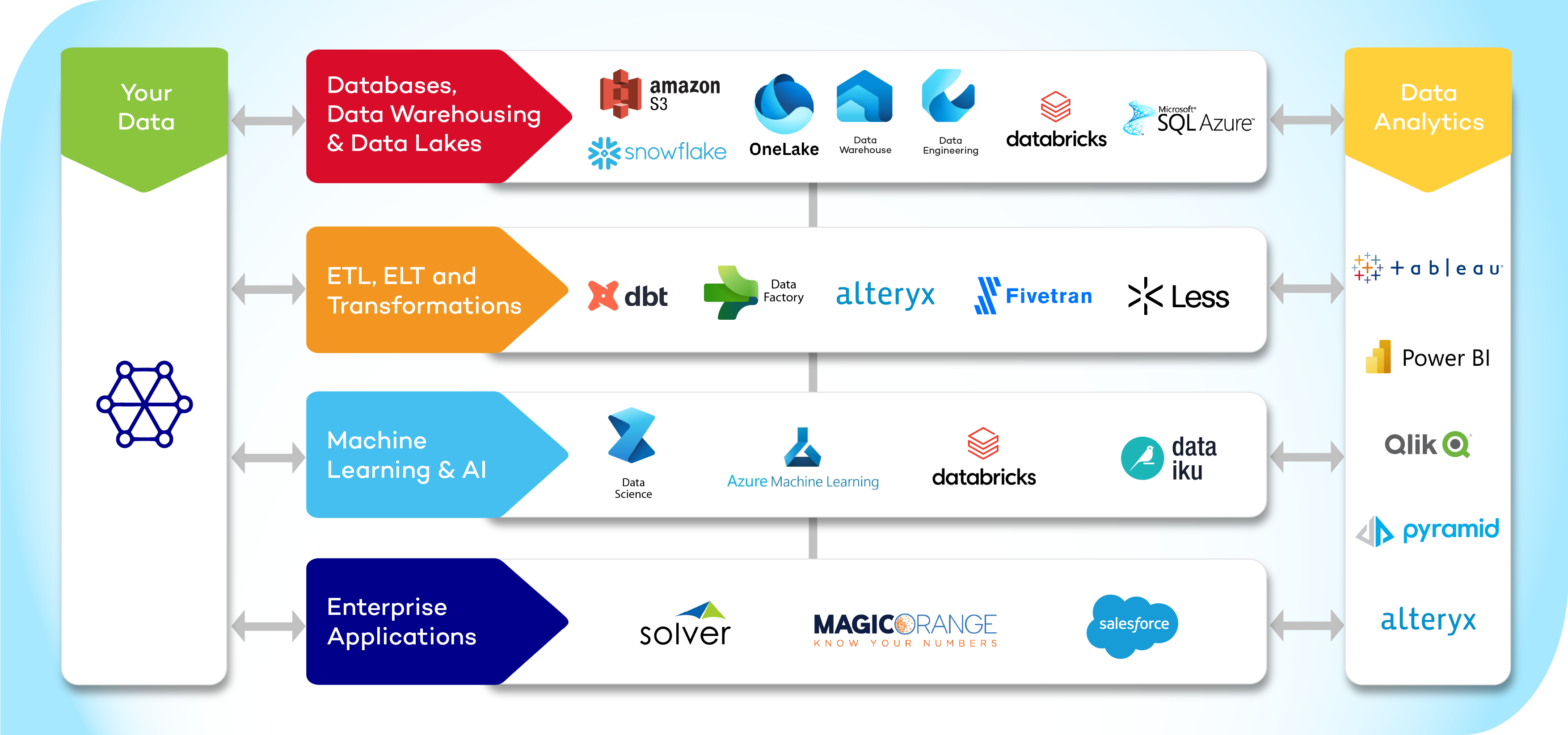 While tool agnostic, we have built valuable partnerships with world-leading technology solution providers across the whole modern data stack. That way we are able to deliver the best value for your organisation