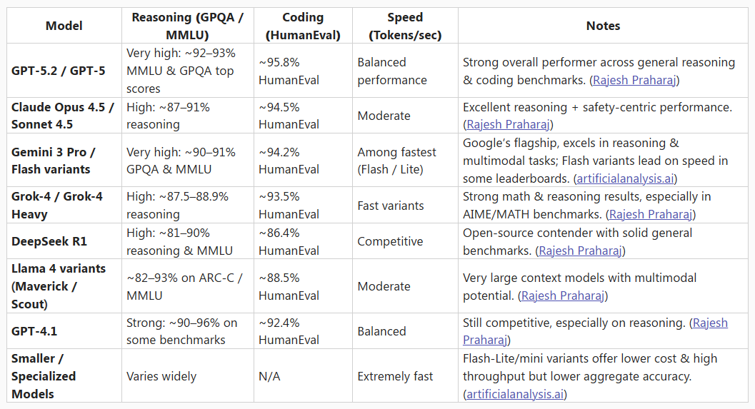 Several platforms now provide comprehensive comparative tables that rank large language models on standardized benchmarks (reasoning, math, coding, multi-task understanding), context window size, pricing, speed, and real-world performance. LLM-Stats offers a broad leaderboard with dozens of models showing benchmark scores, cost, and context capabilities across tasks like MMLU and HumanEval, useful for side-by-side comparisons of OpenAI, Anthropic, and open-source models. ArtificialAnalysis.ai presents a detailed leaderboard of 100+ models that includes metrics such as intelligence scores, latency, and token costs to help evaluate speed and efficiency alongside accuracy.
