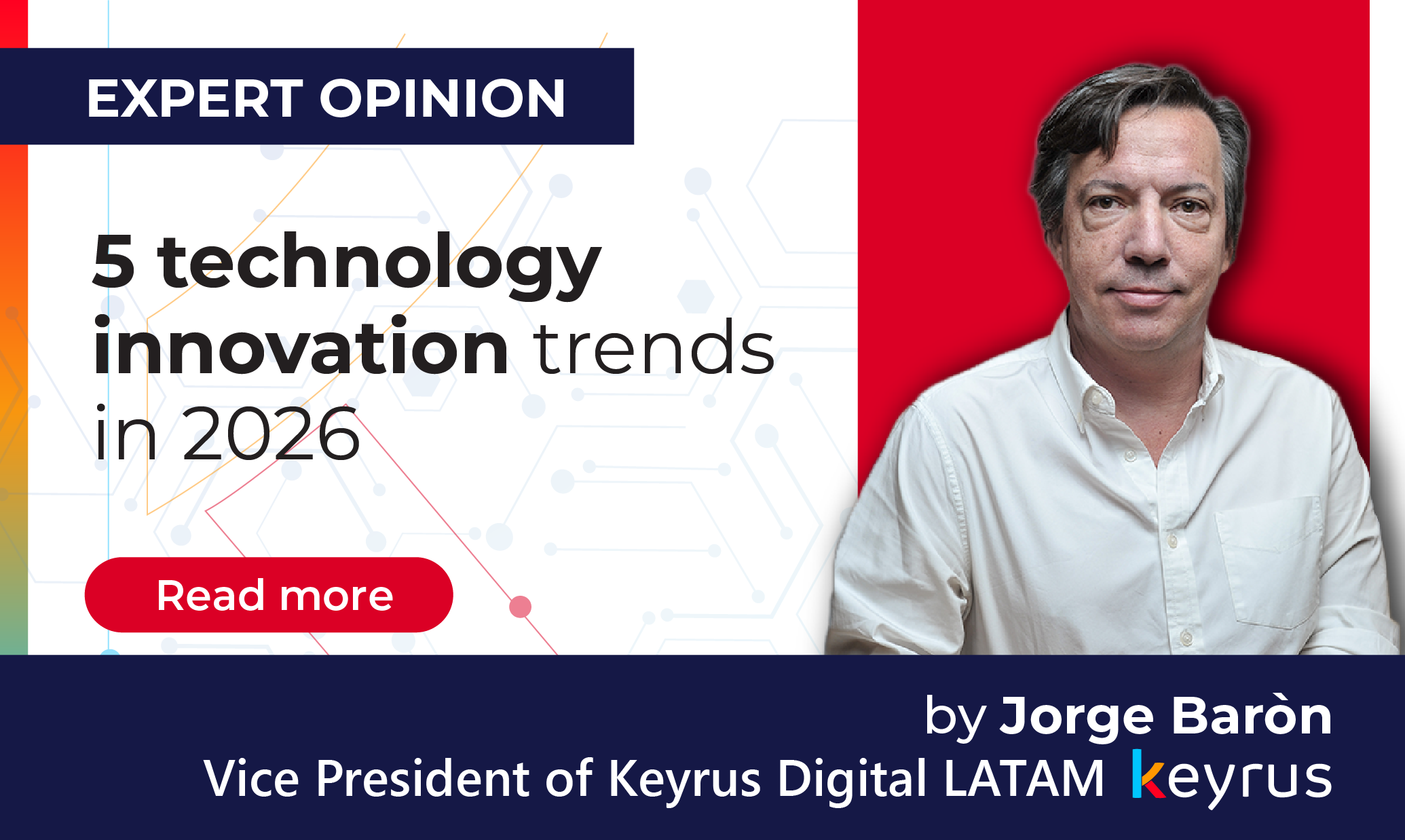At Keyrus, we’ve identified five major technology trends that will shape innovation in 2026. Trends that organisations around the world need on their radar to remain competitive, resilient, and future-ready in an increasingly global economy.